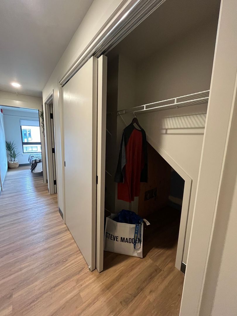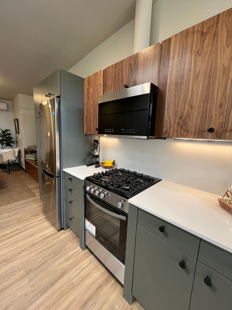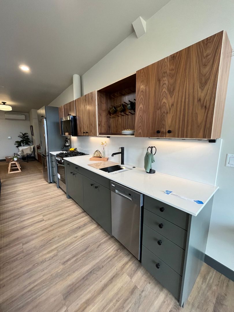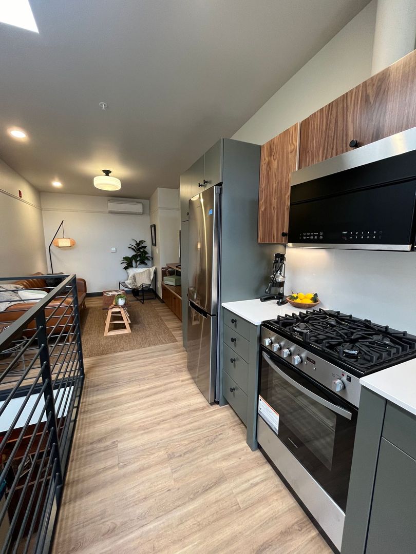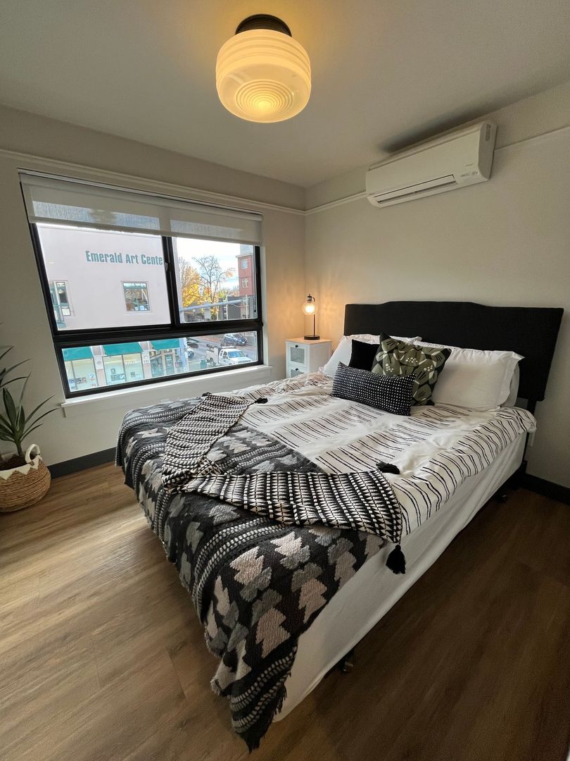 Introducing our new 1-bedroom, 1-bathroom urban townhouse style apartment located in the heart of Springfield, OR. This modern apartment features top-of-the-line appliances, a spacious storage room, and a sleek open floor plan perfect for entertaining. Enjoy the comfort of ductless AC and the convenience of a large deck to relax and unwind. With new LVP flooring throughout and being an end unit, you'll experience both style and privacy. The shared bike rack in the lobby and secured entry provide added security and convenience for residents. Don't miss out on the opportunity to make this urban oasis your new home!