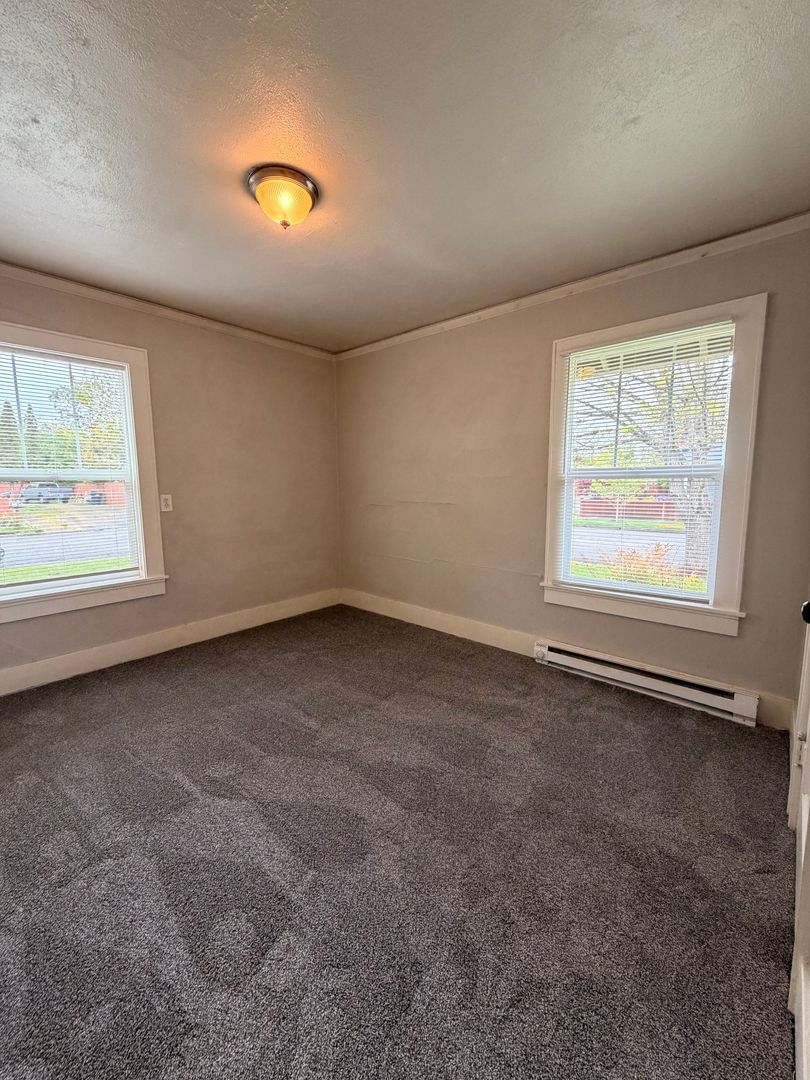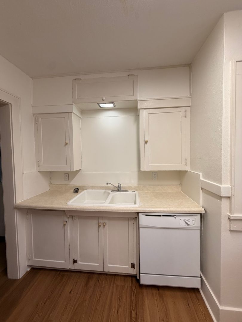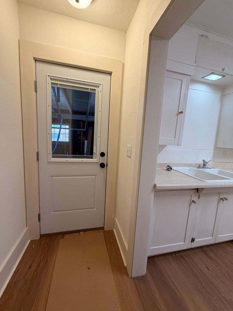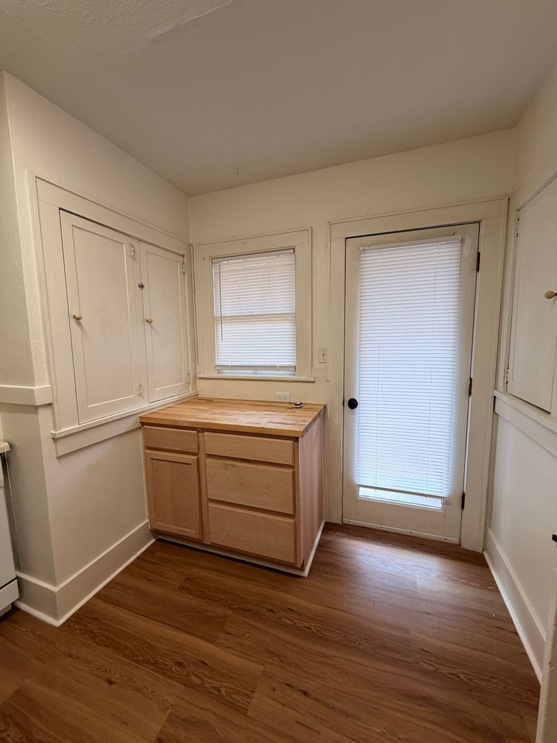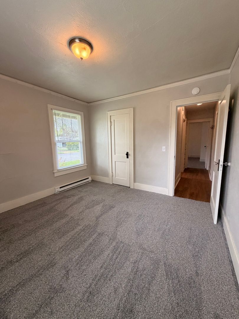 Corner lot 2-bedroom Bungalow in Eugene, OR — completely remodeled and ready to enjoy. This 2-bedroom, 1-bath home features hardwood floors throughout, an updated kitchen and bath, and an included washer and dryer for convenient laundry. The property sits on a corner lot with established landscaping, a fenced yard, off-street parking and a garage. Well-maintained and thoughtfully updated — a must see.