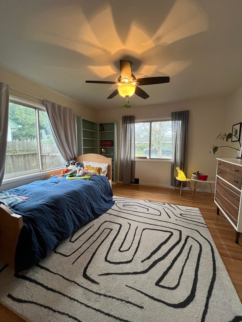 Welcome to this beautiful 4-bedroom, 3-bathroom home located in the vibrant city of Springfield, OR. This property boasts a spacious fenced yard, perfect for outdoor activities and gardening. The master bedroom is separated, offering an added layer of privacy and tranquility. The home also features a handy storage shed, providing ample space for your tools and equipment. Off-street parking is available, adding convenience to your daily routine. Inside, you'll be greeted by stunning hardwood floors that add a touch of elegance to the home. The mudroom is a practical addition, perfect for storing outdoor gear and keeping the rest of the house clean. This home is a perfect blend of comfort and functionality, waiting for you to make it your own.